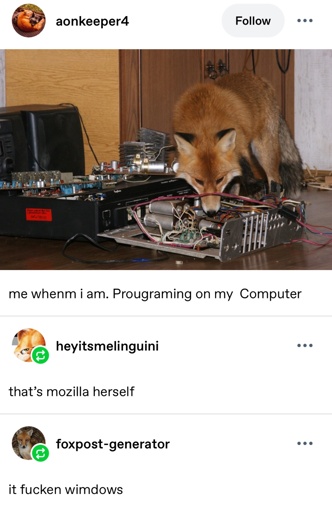 arrow-up11arrow-down1imageProugraming on my ComputerJordan Roher to HumorEnglish · 18 hours agomessage-square0linkfedilink